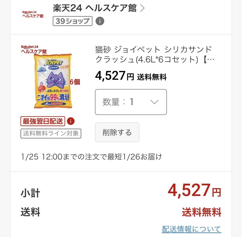 ネコ砂をアマゾンの定期便で購入していました。